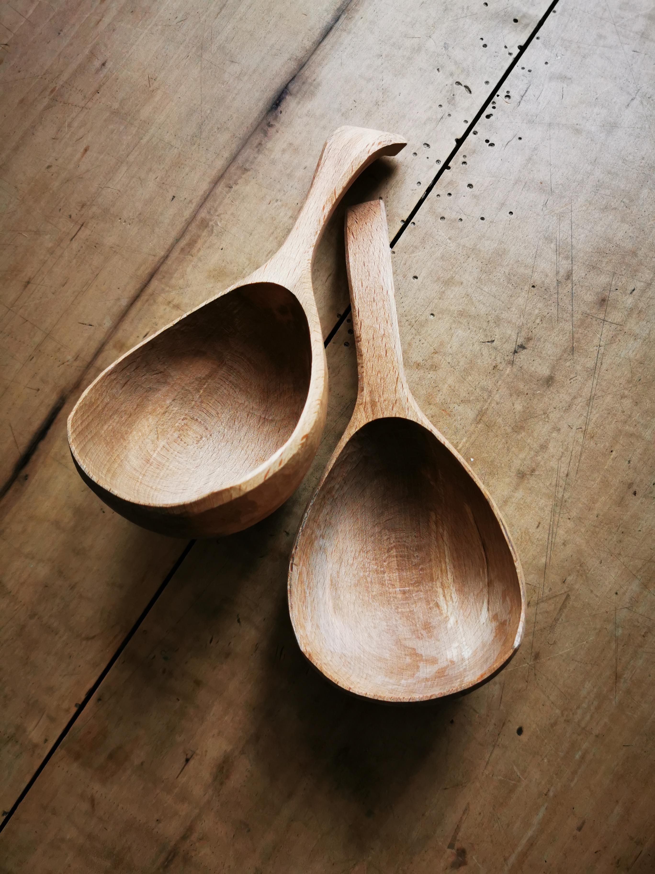 Beech used to be a wood I did not enjoy carving because it is a relatively hard wood even when fresh. It dries beautifully and is a very durable species well suited for spoons etc. In the course of the past year plus we have become better friends and work better together. I still stay away from dry beech although applying finishing cuts to dried utensils now is not as challenging as it once was. Sharp blades is key.